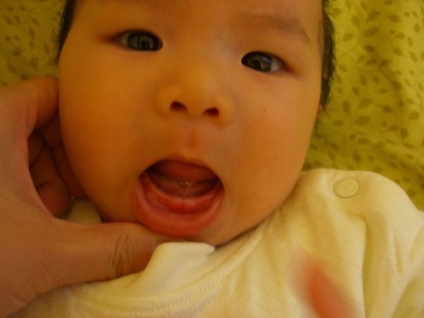 不到8個月就長了六顆牙, 這麼有鈣喔!